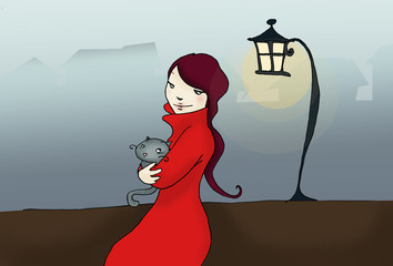 Una Bambina Con Il Cane E Gatto Seduto In Una Sedia Anni Sessanta