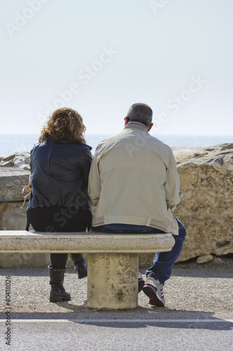 Marito E Moglie Su Una Panchina In Riva Al Mare Buy This Stock